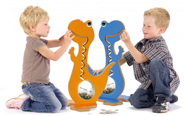 Die Münzen futternden Dinos sind 57 cm hoch und Du kannst sie in den Farben grün, blau, organge, gelb, rot oder in rosa erbeuten! Durch den tollen Kugelbahneffekt macht das Sparen jetzt richtig Spaß, egal ob Groß oder Klein das friedliche Haustier füttert. Die Münzen kullern im Zickzack-Kurs durch bis in den Kugelbauch - der natürlich durchsichtig ist, damit Du Deine Ersparnisse auch sehen kannst. Bis zu 1000 Münzen passen in den runden Kullerbauch udn sogar Geldscheine kannst Du oberhalb des Bauches einstecken.