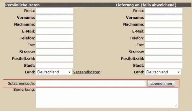 Das Gutscheinfeld im Warenkorb bei ooge heißt: Gutscheincode