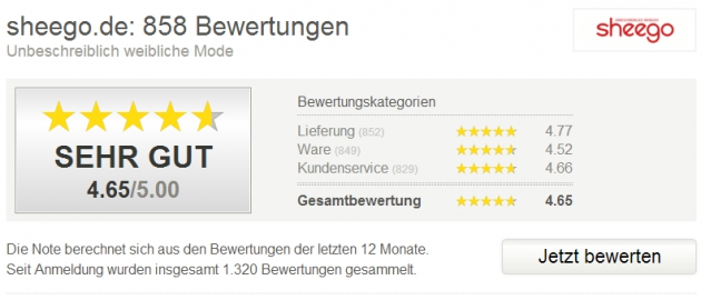 Trusted Shop und Studie zertifiziert sheego: sehr gut