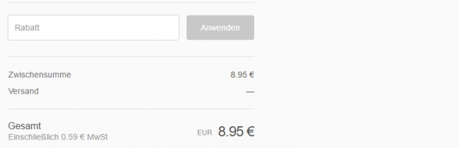 Lege Deine Artikel in den Warenkorb und gehe zur Kasse. Im Fenster wo Du Deine Kundendaten eingeben musst, findest Du rechts das Feld für den Gutscheincode. Gib ihn hier ein und klicke auf "Anwenden", um ihn zu bestätigen.
